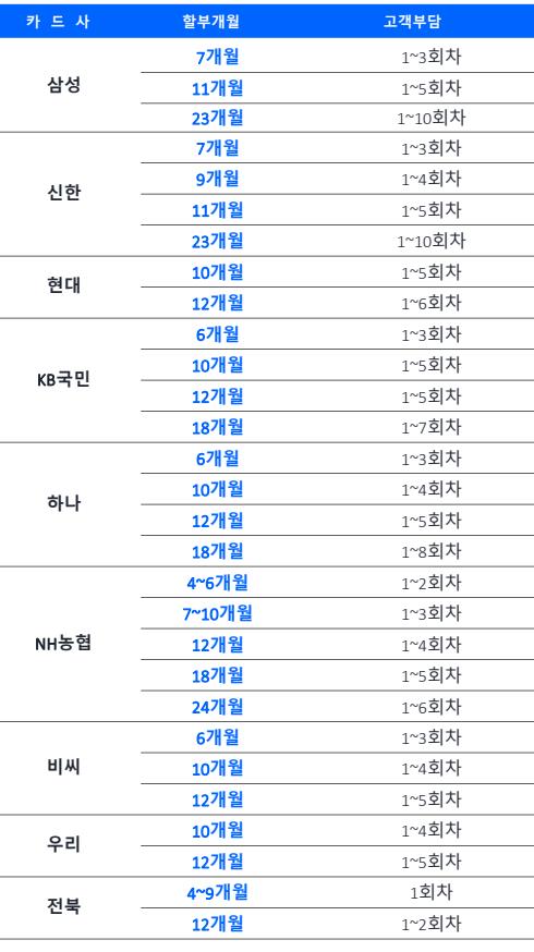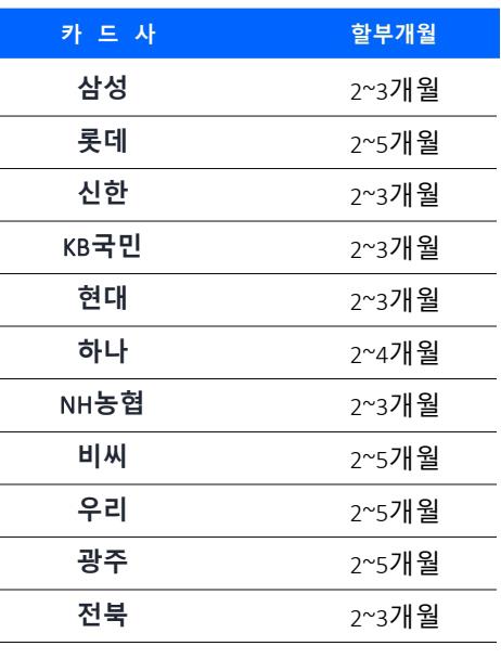 ※ 유의사항 ■ 카드사 정책에 따라 체크, 선불, 법인, 기업, 기프트, 하이브리드, 은행계열카드(비씨 브랜드에 포함되지 않는)는 무이자 할부가 적용되지 않습니다.