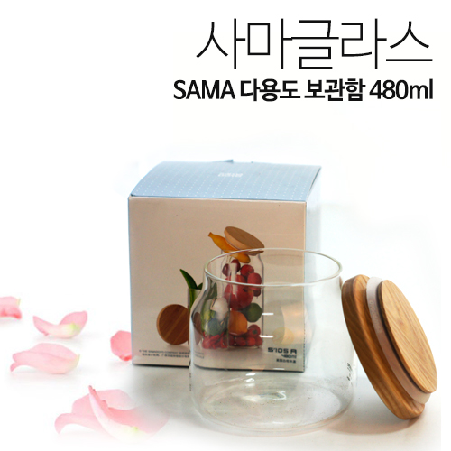 SAMA 다용도 차보관함 유리함 480ml, 원목두껑