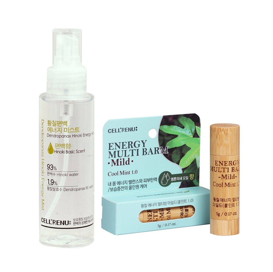 황칠 에너지 멀티밤 마일드버전 1개, 황칠편백 에너지 미스트 편백향버전 1개가 배송되는 상품입니다.
