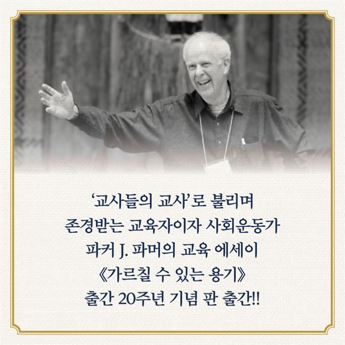 출간 이후 전 세계 수백만 명의 독자에게 찬사를 받은 《가르칠 수 있는 용기》는 가르침에 대한 파머의 통찰과 다양한 실험의 결정판 이라고 할 수 있다. 생생하고 감동적인 방식으로 가르침의 희망과 용기, 열정을 불러일으킨 이 책은 출간 20주년을 기념하며 그동안 교육운동의 성과를 돌아보고 다시 희망의 메시지를 전한다.