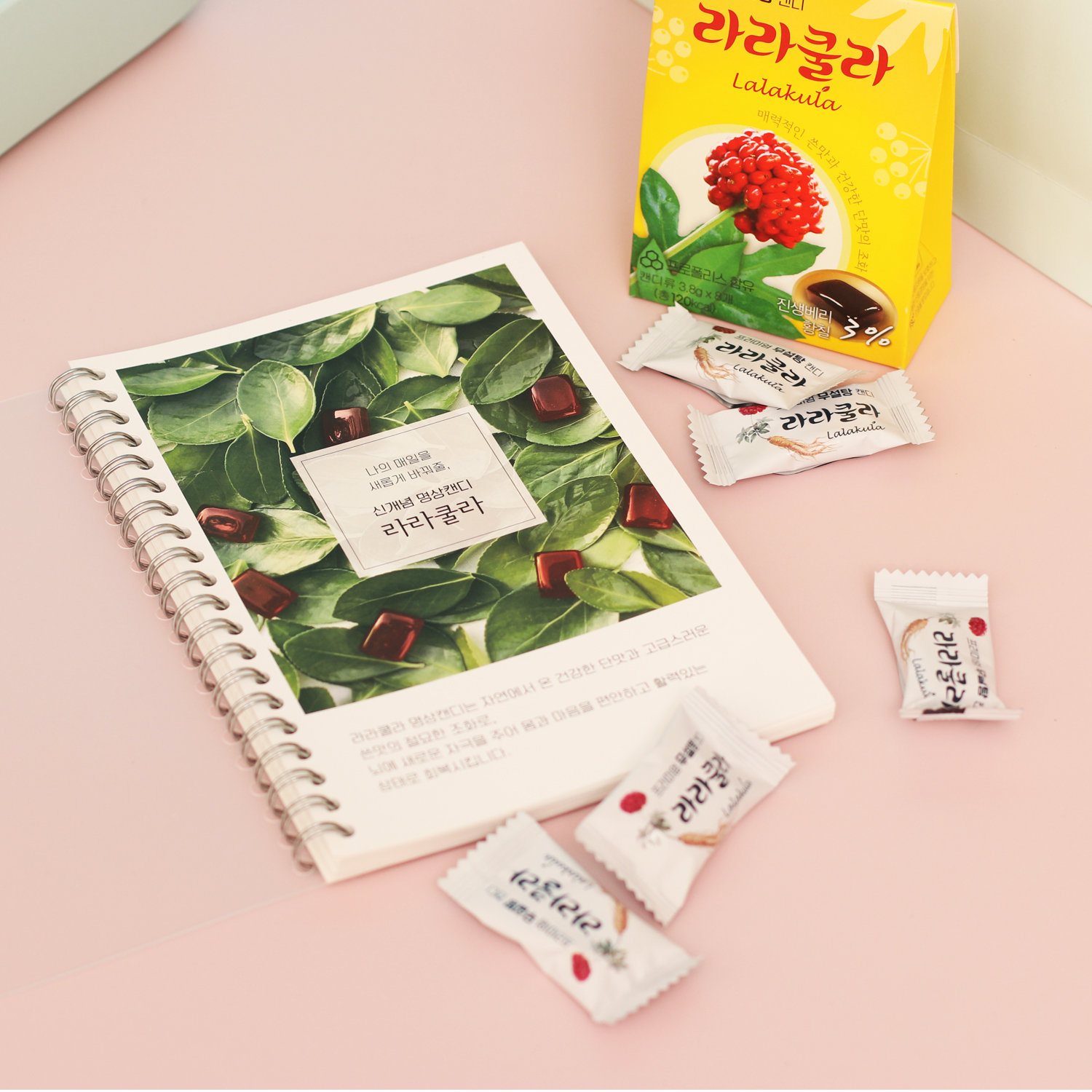 명상수첩은 캔디 뒤에 있어서 캔디를 꺼내면 보입니다.